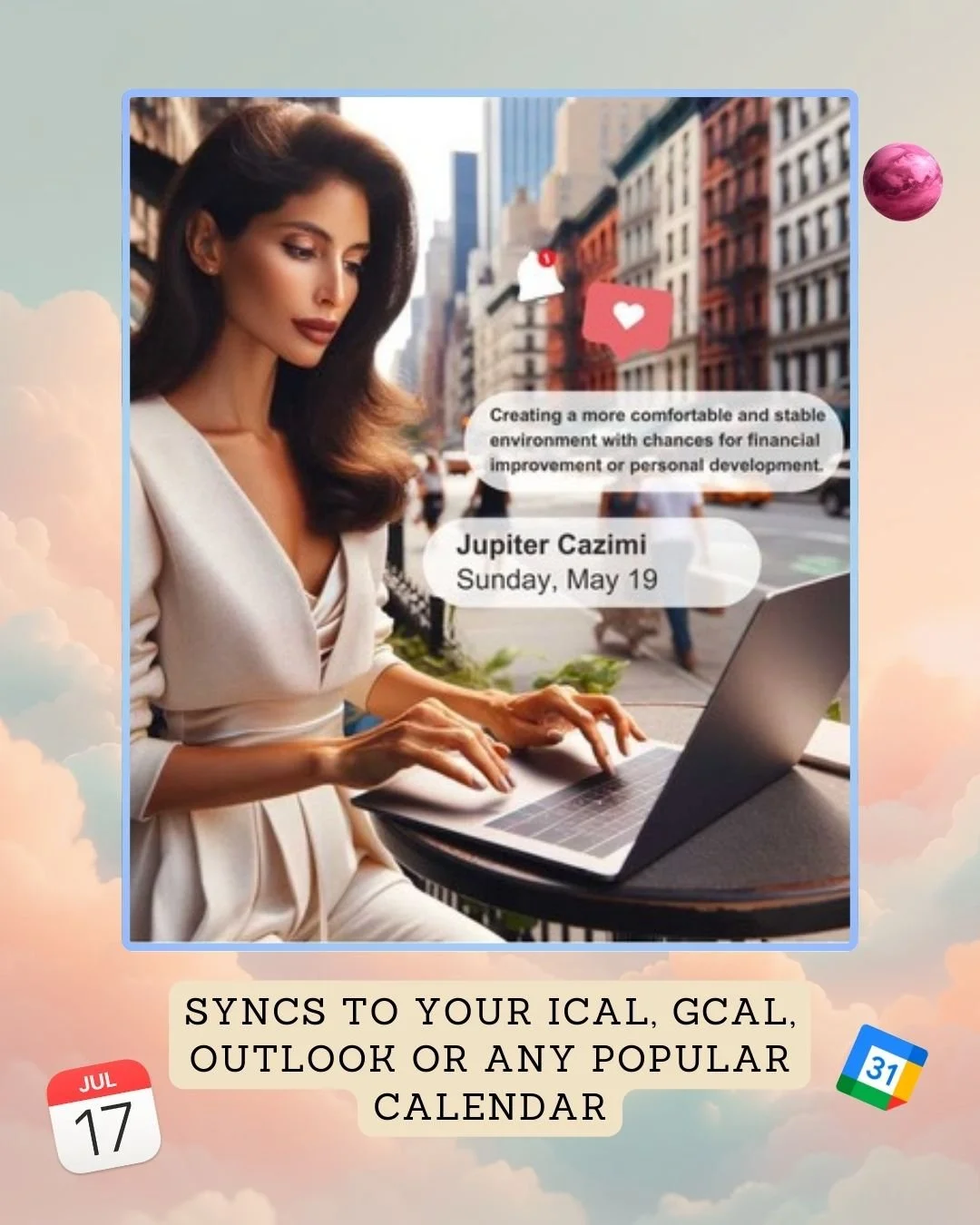 ✅ Automatically uploads astrology right into a calendar you already use, like Apple iCal or Google Calendar — no more guessing, just effortless guidance for your best days.